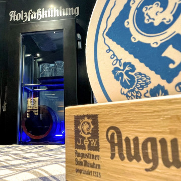 Augustiner Lagerbier aus dem Holzfass und bayerische Snack, neu interpretiert. Direkt am Viktualienmarkt.